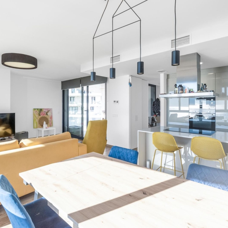 If you are searching for an exclusive luxury apartment for rent Allonbay Villajoyosa, this magnificent 3-bedroom residence in the Azure phase is an exceptional choice. Situated in the building closest to the shoreline, this apartment provides an immersive seaside experience with panoramic views of the turquoise Mediterranean. The property is offered for long-term rental, fully furnished with bespoke luxury furniture and high-end equipment, making it a “turnkey” solution for the most discerning residents.
