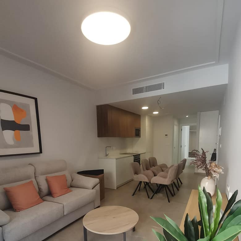 New build apartment in Torrevieja Center represents the peak of contemporary urban living within the prestigious Skandinavia IV project. This 60 $m^2$ residence is defined by its architectural volume and north-facing orientation, ensuring a temperate indoor climate during the peak Mediterranean summer. Sold as a complete turnkey solution, the price includes a designer furniture pack, high-end whitegoods, and full climate control systems.