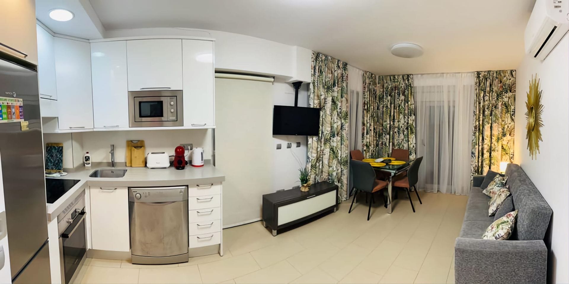 - Сердце квартиры: Уютная, светлая гостиная с кухня американского типа, полностью оборудованной кухней для современного кулинара.